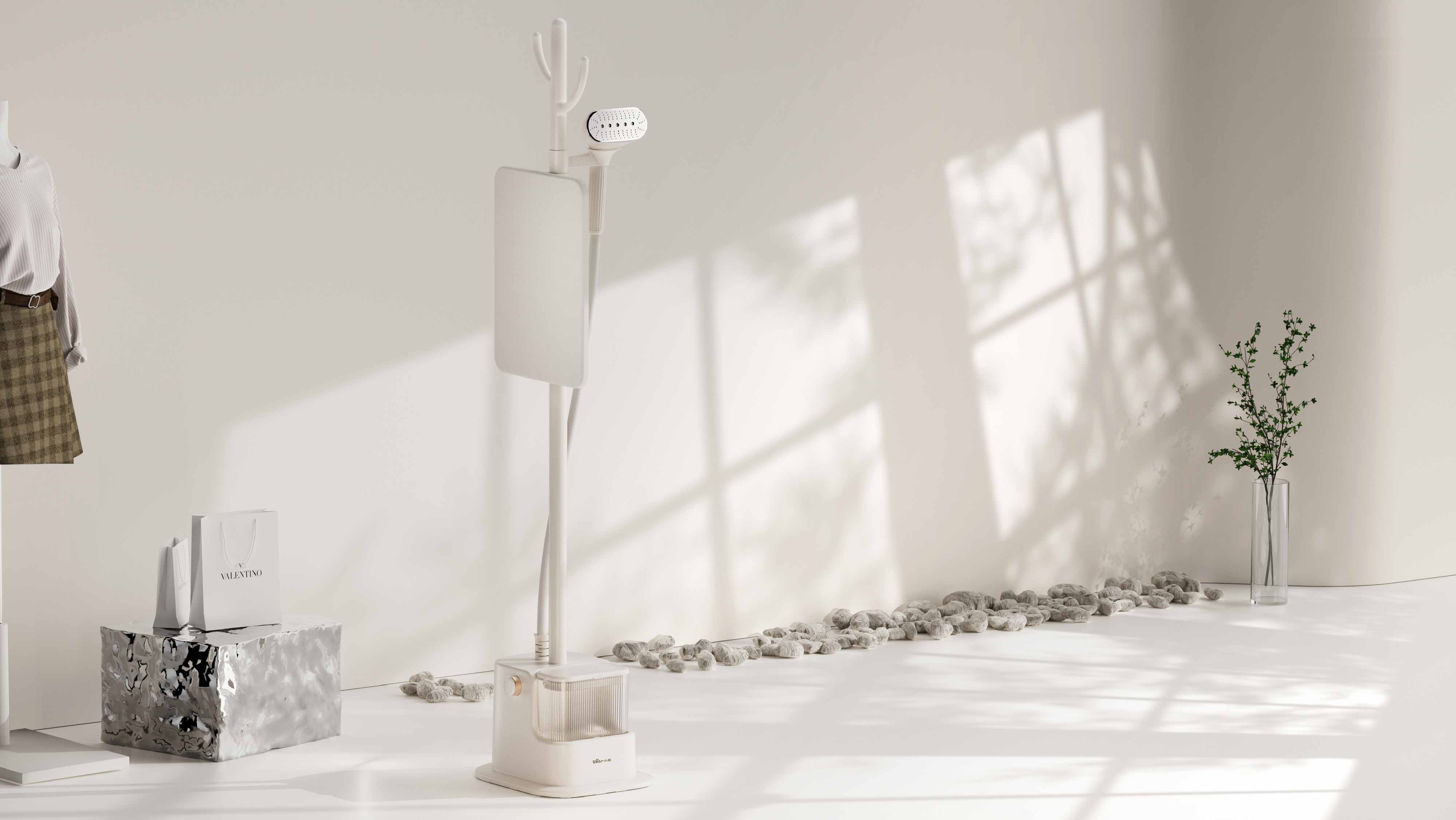 2024年,小熊电器联合瑞德设计,进一步挖掘生活电器赛道中,熨烫品类的细分场景和商业机会。瞄准家庭环境下的高品质衣物护理,打造了一款「立式挂烫机」,旨在为追求品质生活的家庭用户提供“省心省力”的生活伴侣。